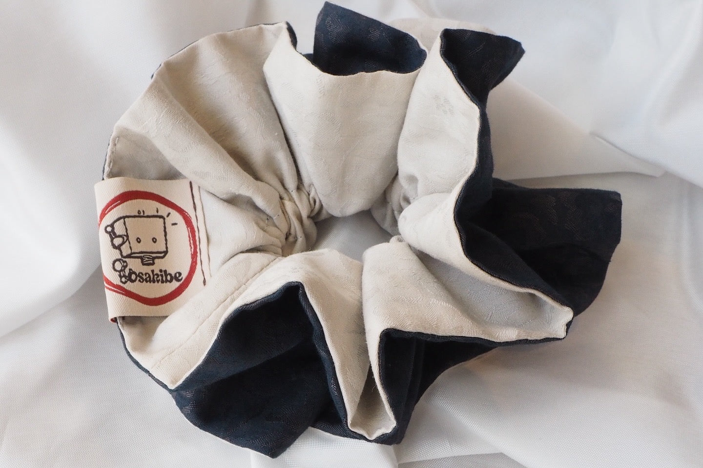 osakibe01の花オーバーオールと同じ生地で作成したボリューミーなシュシュです。